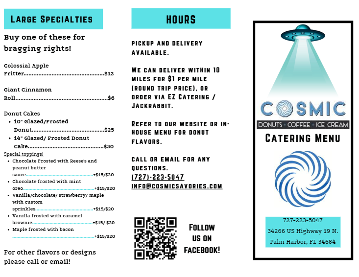 COSMIC Donuts can accommodate custom orders for your next special event, party, or celebration. We provide catering for parties of all sizes, from intimate gatherings, to supplying treats for weddings and corporate parties.